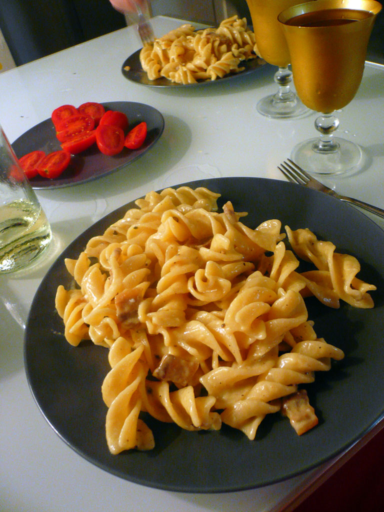 We picked up the ingredients so that we could have spaghetti alla carbonara for lunch.